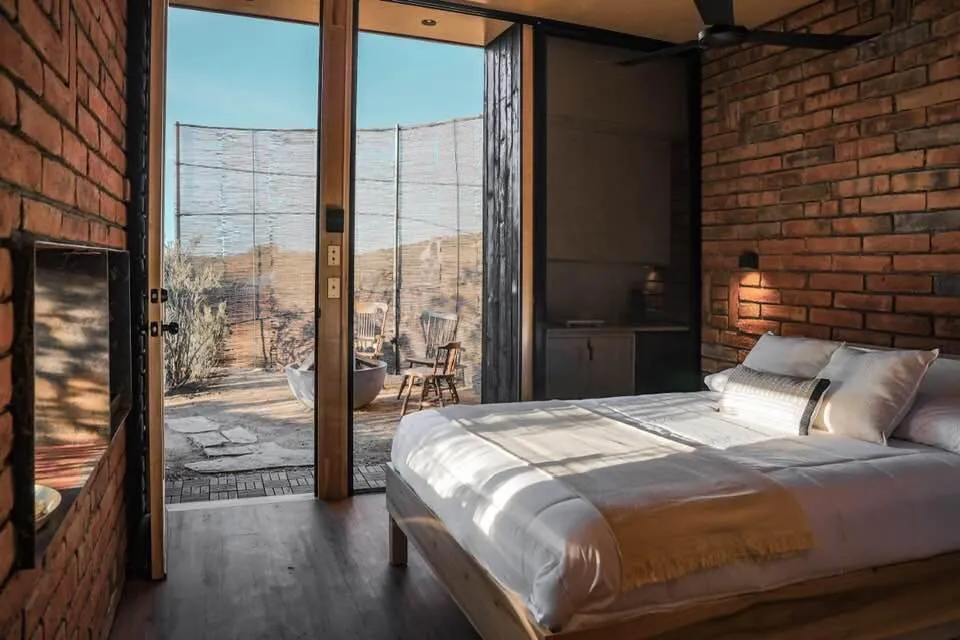 Está equipada con cama queen, cama twin, ventilador, calentón, baño completo con agua caliente, estufa de una hornilla, refrigerador y lavaplatos. Tiene WiFi satelital, televisión y dish network. En el exterior cuenta con asador, hoguera y banca.