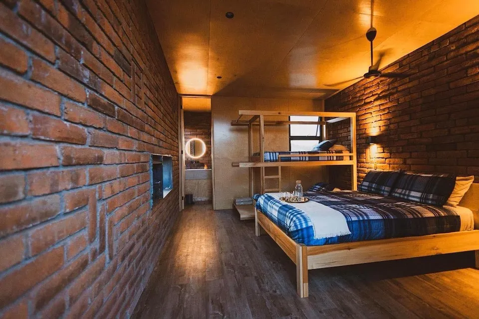 Está equipada con cama queen, litera con dos colchones twin, cama twin, ventilador, calentón, baño completo con agua caliente, estufa de dos hornillas, refrigerador y lavaplatos. Tiene WiFi satelital, televisión y dish network. En el exterior cuenta con asador, hoguera y banca.