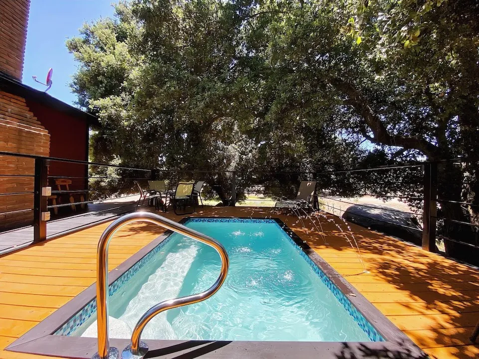 Está equipada con cama queen, tapanco con colchoneta de vinil, domo con vista a las estrellas, comedor para cuatro personas, chimenea, baño completo con agua caliente, estufa de cuatro hornillas, refrigerador y lavaplatos. Tiene aire acondicionado, WiFi satelital, televisión y dish network. En el exterior cuenta con alberca privada / jacuzzi, dos camastros, mesa, cuatro sillas, asador, hoguera y banca.